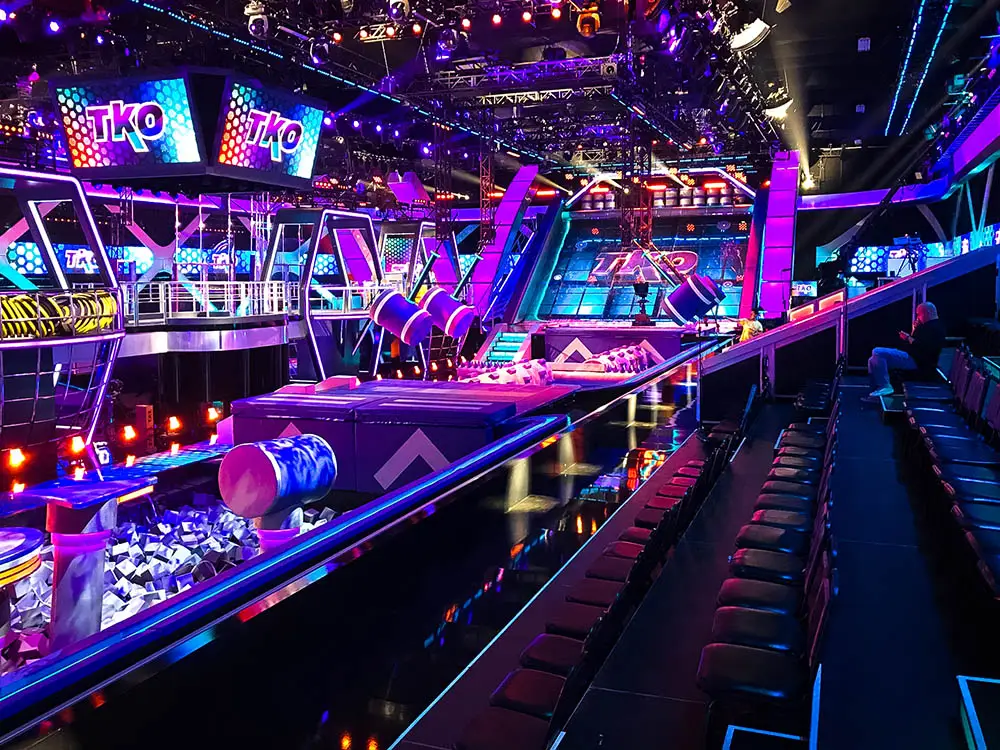 TKO features a one-of-a-kind obstacle course divided into several high-stakes stages, where contestants must navigate a variety of physical tests designed to push their limits. The show’s signature twist is the “Battle Stations,” where competitors try to hinder the active contestant by activating traps, such as launch pads, swinging arms, or water cannons. The goal is to test not only speed and agility but also resilience and mental fortitude under pressure.